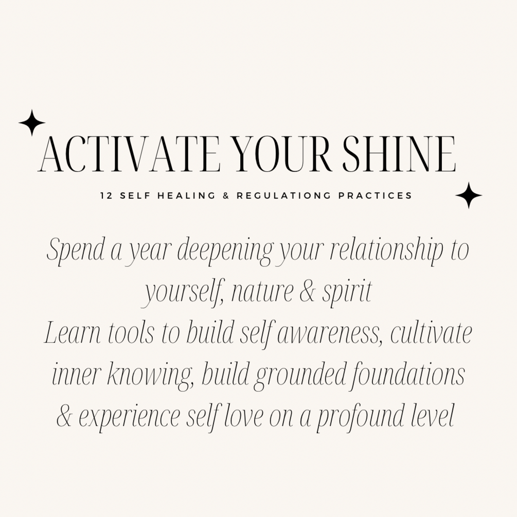 It is called Activate Your Shine because throughout your journey, as you integrate these tools, every part of you will activate, regulate, elevate and shine!